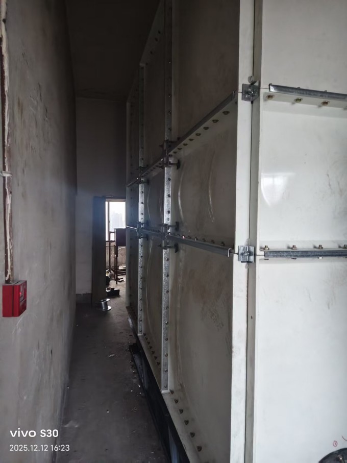 SMC水箱組裝就是用模壓的小塊,到施工現(xiàn)場組裝成大的水箱。外面要用角鋼進行固定的,角鋼搭出個水箱模型,在上面鋪玻璃鋼平板,拼縫處再現(xiàn)場多糊幾層方格布...